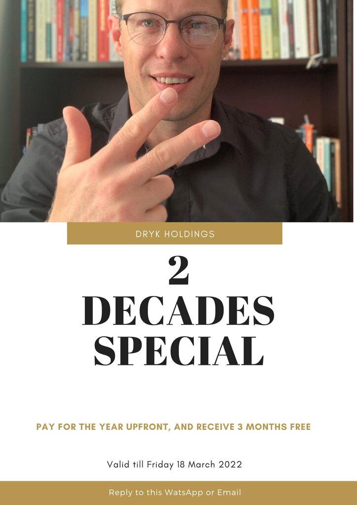 We are still celebrating 15 years of Dryk Holdings and 2 decades of Jasper Basson serving small business owners.